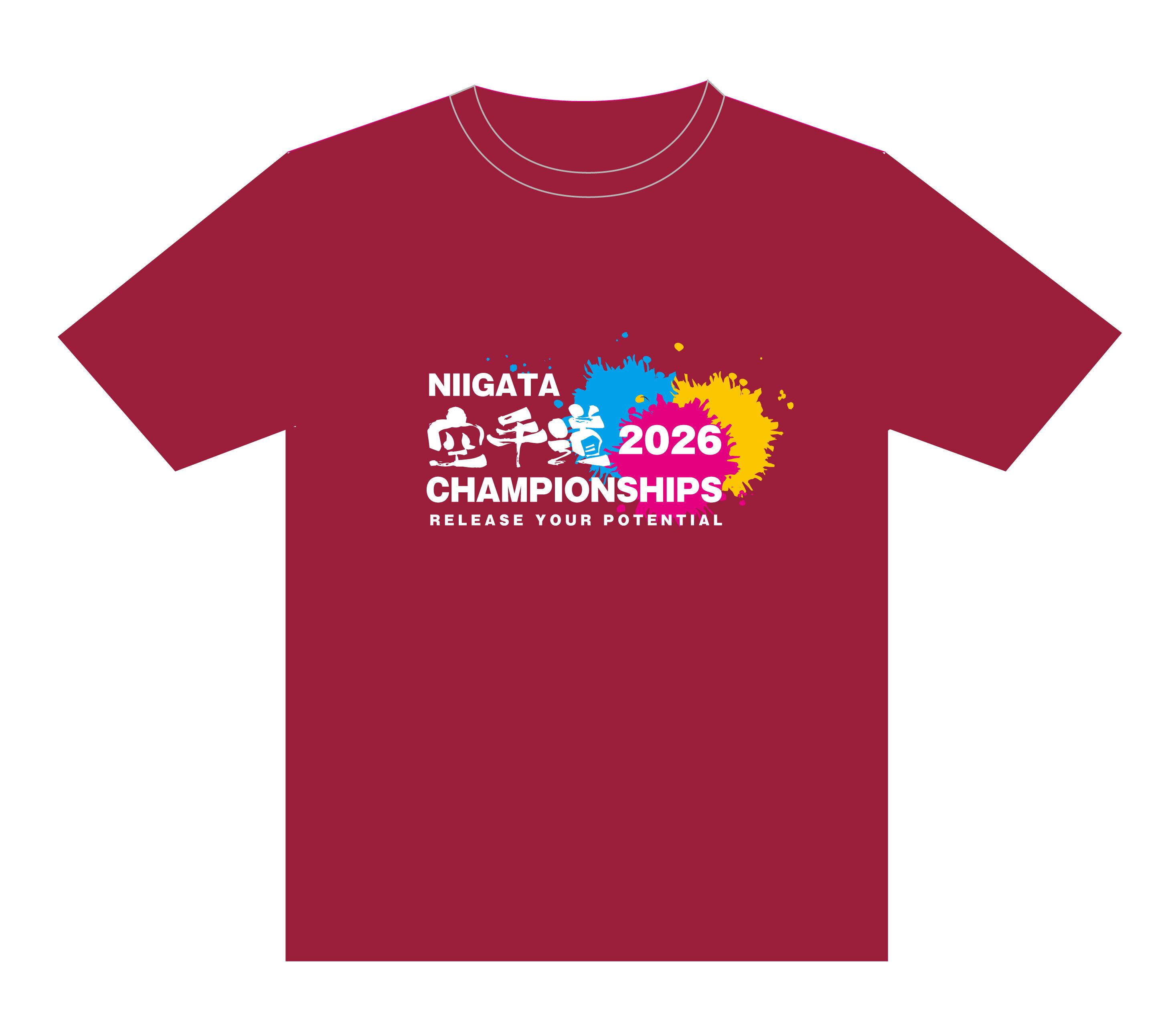 新潟県空手道大会2026公式Tシャツの赤です。